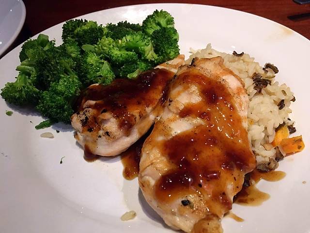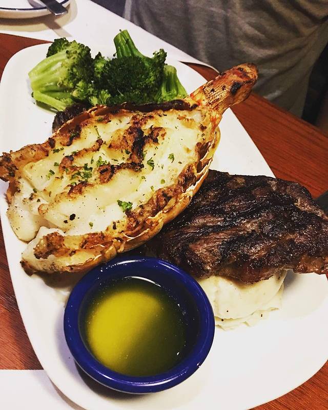 老公点的海陆大餐,牛排被前一天C家的七分熟弄怕啦,结果点的全熟的,有点干,但特别香,要是七分熟的就绝啦,BBQ龙虾好吃的没得说。
