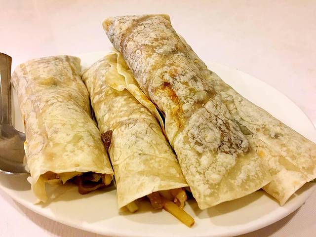 点了个木须肉,上来以后是这个样子的,第一次见这么做的木须肉,不过味道不错哦。