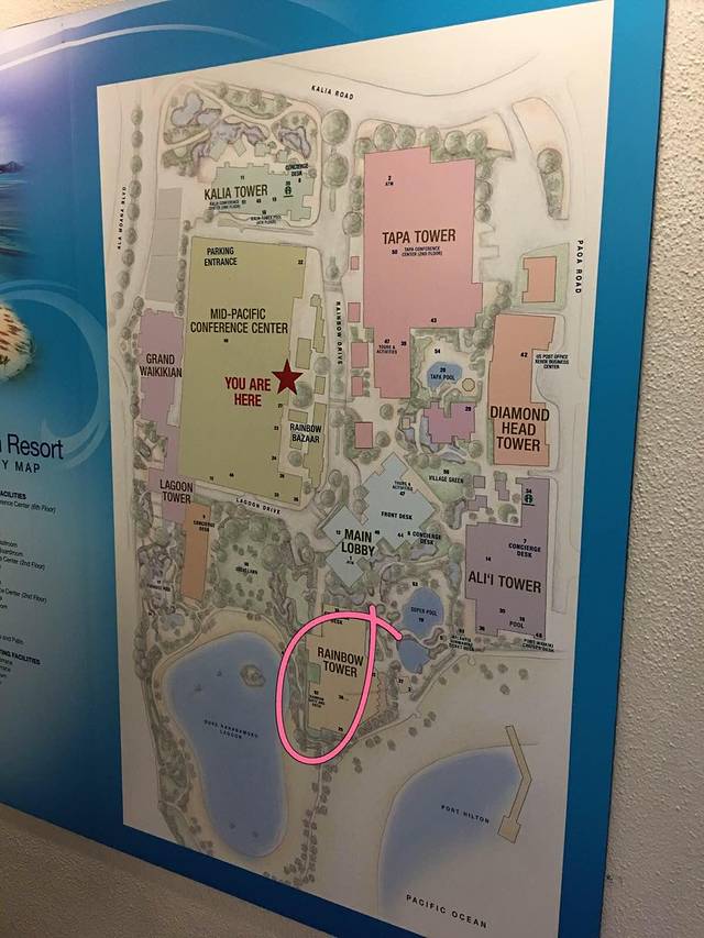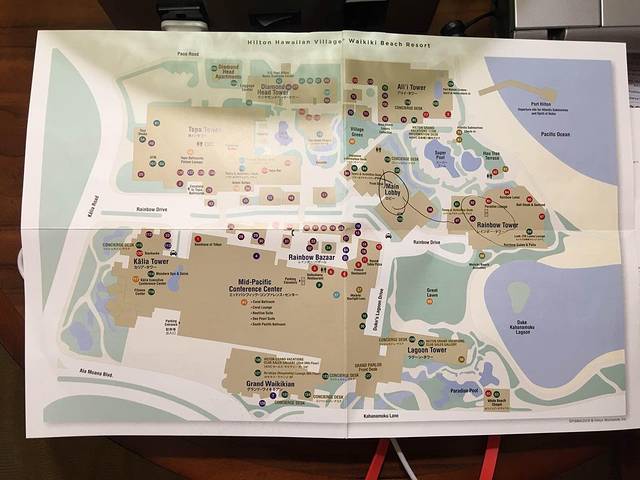 去之前看攻略,说我们入住的希尔顿特别大,有好几个Tower,所以办理入住和退房都需要排大队。但我们可能赶得巧,入住和最后退房都很快很顺利。顺利办理完入住,看了一下酒店地图,了解一下地形。