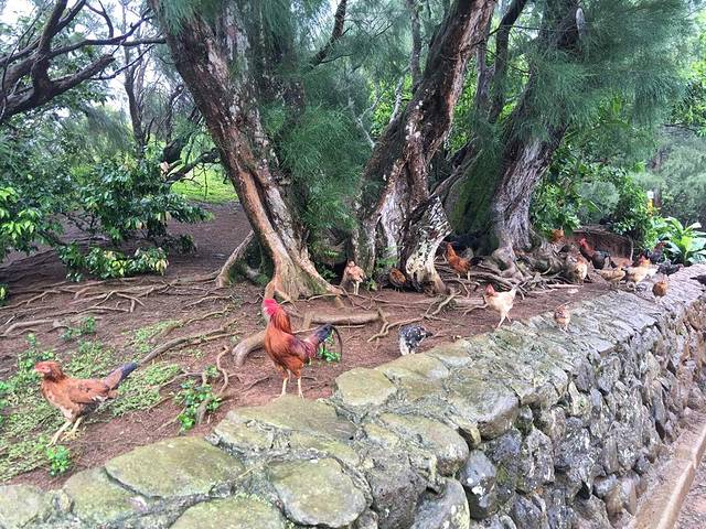 今日天气,威基基海滩那边艳阳高照暴晒,北岸这边阴雨绵绵凉爽。一路上丝丝小雨开始慢悠悠地飘躺在前挡风玻璃上。