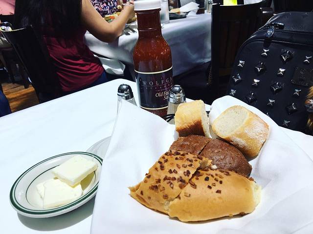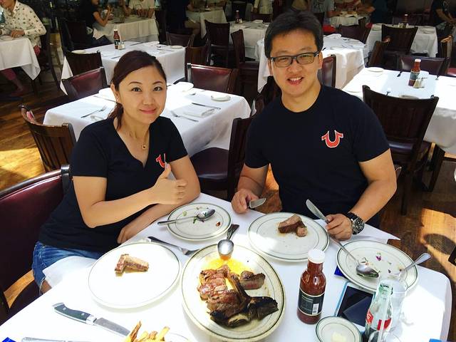 Wolfgang’s Steak House不愧为全美十大牛排之一,如果想吃晚餐,不提前预订一座难求,所以我们只好午餐来啦。老美的量真不是一般得大,牛排两人份的够三四个人吃啦,美味到全部消灭。薯条见过大的,没见过这么大的,强烈推荐