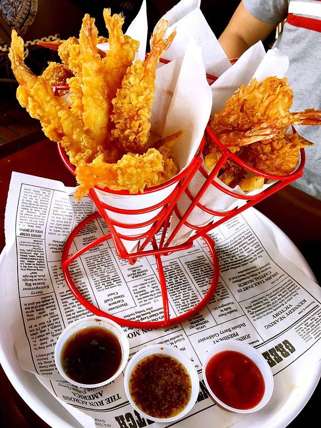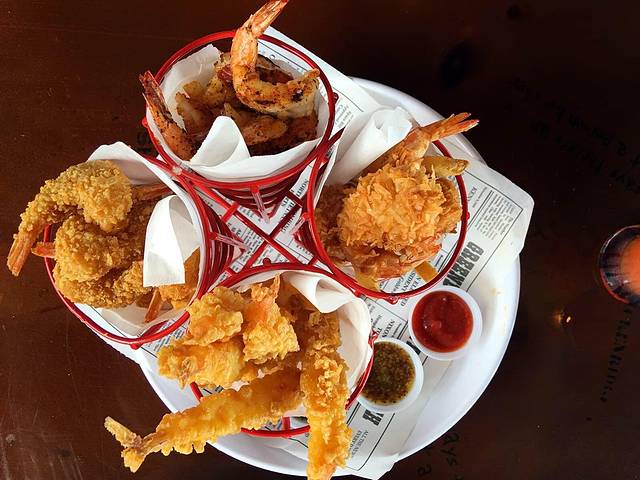 店内特色,每桌必点,各种口味的炸虾,适合人多享用,两个人吃那么多油炸食品,感觉好腻啊。