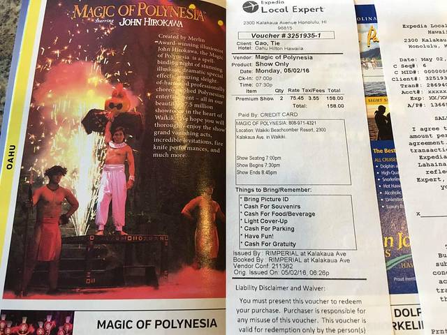 两人商量后决定晚上来看波利尼西亚魔术秀,六点睡醒,出来买票,按照导航步行至Kalakaua大街的某处,找了半天问了半天,最后锁定在Holiday Inn酒店内,一层就有票务可以出票。