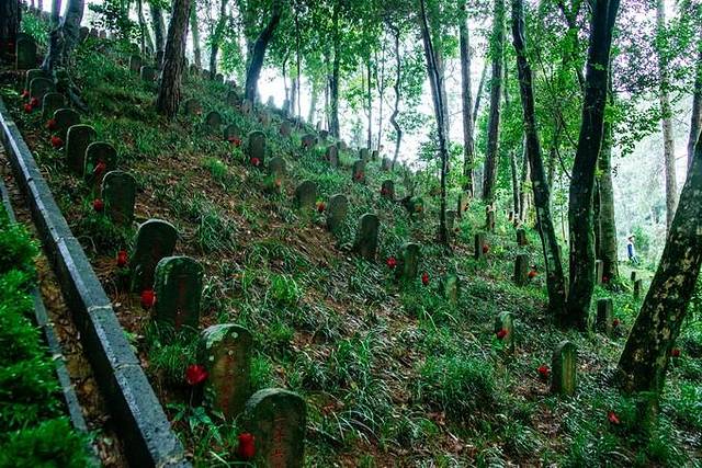 滇西抗战是中国抗日战争史上极为惨烈的一页。为了切断当时国际援华物资的唯一通道——滇缅公路,日本法西斯从东南亚反抄中国的大后方,企图攻占云南、威胁重庆,迫使中国就范。1942年5月,日寇的铁蹄踏上了滇西的土地,腾冲就此沦陷。5月5日,中国军队及时炸毁了怒江上的惠通桥,才将沿滇缅公路进犯的日军阻击在了怒江西岸,从此两军在怒江东西两岸对峙长达两年之久。1944年5月,为策应中、英、印联军对缅北日军的反攻,重新打通滇缅公路,收复怒江以西的失地,据守怒江东岸的中国远征军发动了滇西反攻战役。1944年5月,远征军便以二十集团军6个师的兵力实施腾冲反攻战。腾冲城是滇西最坚固的城池,兼有来凤山作为屏障,两地互为依托。日军经过两年多的据守,在两地筑有坚固工事及堡垒群,准备了充足的粮弹。据统计,从1944年5月11日远征军20集团军强渡怒江至9月14日攻克腾冲城,历时127天,所历大小战役达40余次,毙敌6000余名,国军第二十集团军共阵亡9168人,最终收复了腾冲,使腾冲成为滇西最早光复的县城。在战役结束后,时任国民政府委员兼云贵监察使的李根源倡议兴建陵园以祭悼国军阵亡将士。此后在印度华侨的援助下开始修建墓园,于1945年7月7日正式落成。李根源根据《楚辞》中的“国殇”一篇,为之起名为“国殇墓园”。