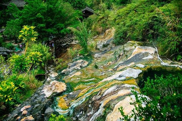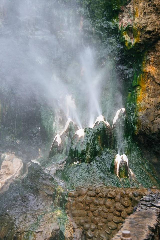 热海蛤蟆嘴,左边是河水冷的,右边喷出的是90°的开水