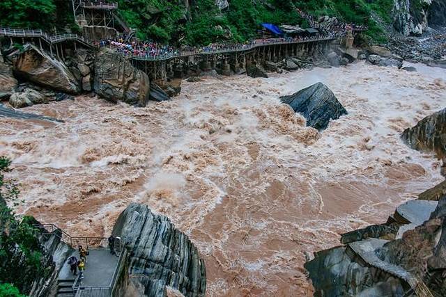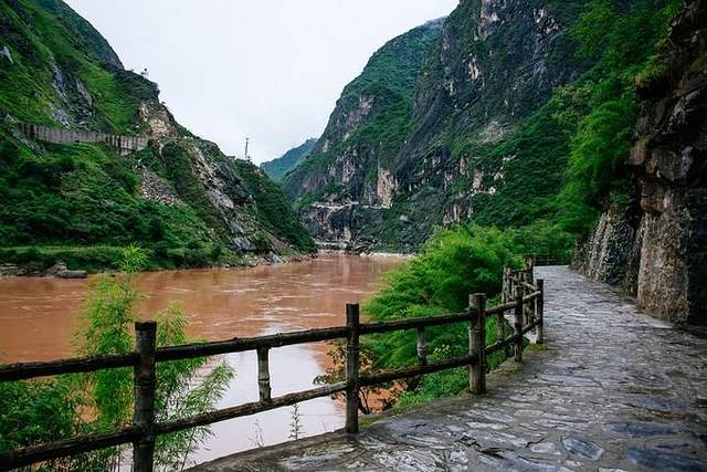 2、上虎跳分两个售票处一个在丽江境内,一个在香格里拉境内,两个景区隔江相望。如果你是自助游或者自驾游我建议你到丽江境内的,优点是人少人少人少,没错我打了三个人少,缺点是须要走三公里的栈道但路况相当好走。如果你是旅行团的,抱歉你只能被拉倒香格里拉境内的,优点是下了车就能看到上虎跳,缺点是注意你的鞋别被踩掉了