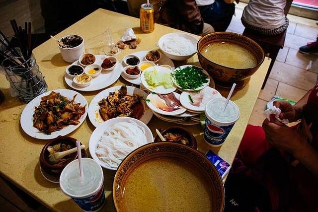 饿了,找地方喂脑袋。传说云南最牛逼的米线桥香园........然并卵,吃放像打仗,人多的像十一的长城,门口买饭票然后把跑堂的服务员“抢”过来给他饭票,很长时间给你端来一大堆..........口味与吃法真是不太适应,可以说真难吃.....