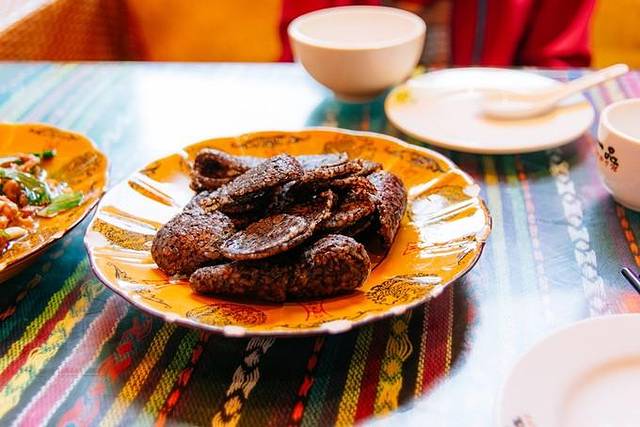 吃了一顿比较地道的藏餐,咖喱土豆、玉米粑粑、炒牛肉、空心菜、奶茶味道还可以