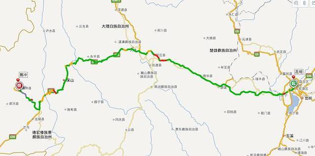 八点从酒店出发,全程应该是625公里可谁知祥云站高速封闭不能走了,必须从祥云县下高速走国道再从弥渡上高速,这一折腾耽误了2个多小时多走了150KM,到腾冲快5点了。