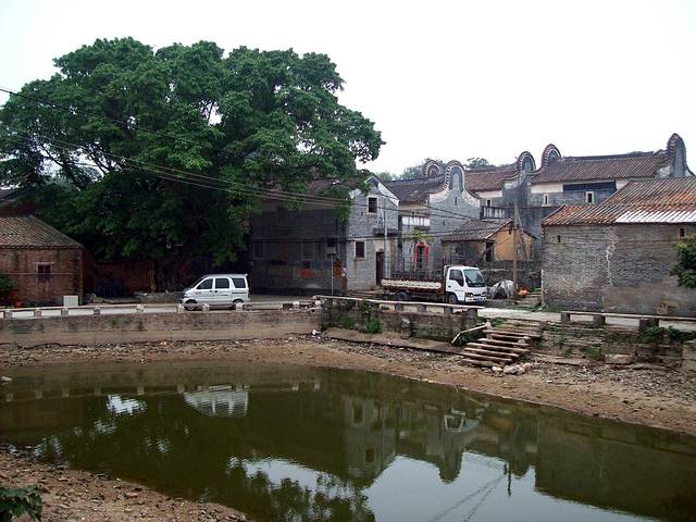 饭后冒着恶劣的风雨浓雾游览了西樵山的白云洞道观区、四方竹园、无叶井、观音苑(高坡上巨大的观音像在浓雾中若隐若现),中途在车上可眺望山下广阔平坦、状如网格的岭南特色农业——桑基鱼溏。在半山处的著名特产美食——西樵大饼的生产厂里,我们每人免费领到一袋(两个),不少人一时冲动还购买了几袋做手信。我回家后品尝才发现太松散太粘牙,实在难吃得要命,老记得小时候觉得挺好吃的,不知是因为现在好东西吃多了、嘴刁了,还是因为制作水平下降了。