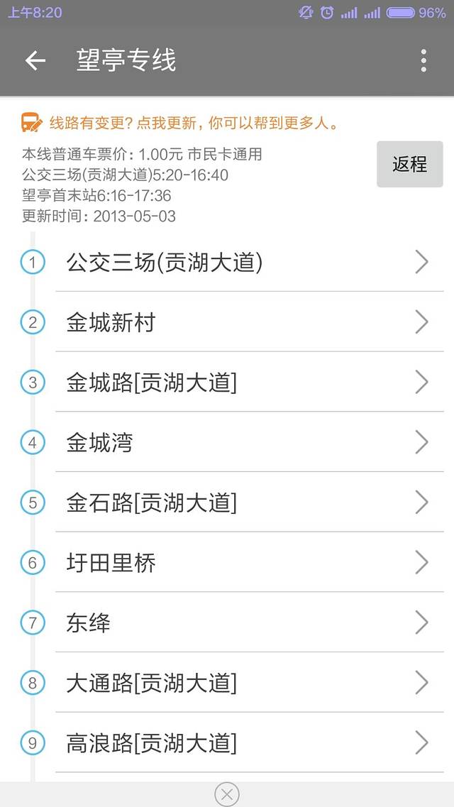 5点20分,望亭专线开出,江苏一卡通刷卡0.6元,等车时间3分钟。