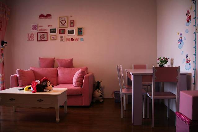 打开房门之后,发现处处是心机,门口的米妮米奇带着我进入了一个粉红色的童话世界。