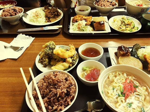 冲绳之旅的首顿午饭是在酒店对面的樱坂食堂吃的。点了烤鸡套餐,端上来时吓了我们一跳。