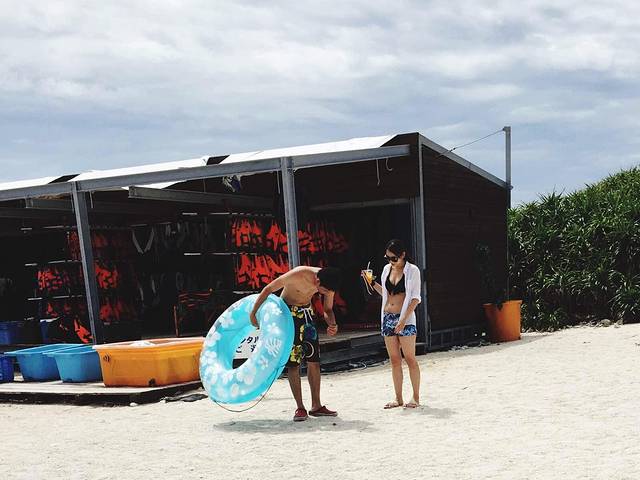 我们租了一个小屋。5000日元/天。我们觉得租这个非常明智,因为外面的太阳实在是太厉害,太阳伞完全不管用。