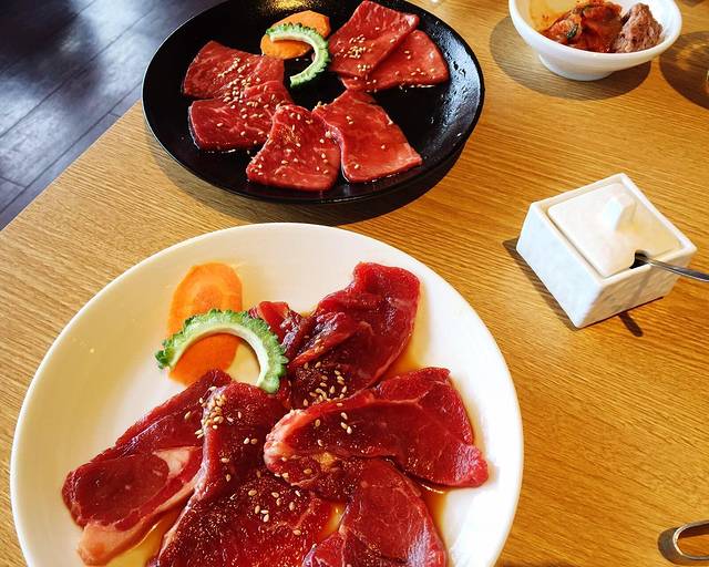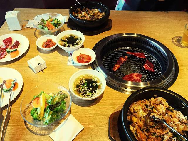 午饭在烧肉北中城。环境不错。套餐不是很贵。烤牛肉石锅拌饭套餐是1450日元。不过牛肉一般。