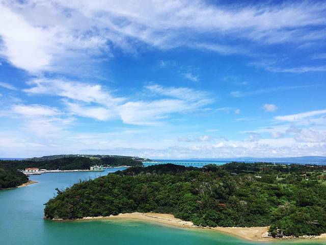 下午1点多钟出发去古宇利岛。从水族馆到古宇利岛大概是30多分钟的路程。孩子在车上睡着啦。所以我们也就是开车围着古宇利岛转了一圈拍了拍照。(照片中的远处就是著名的古宇利大桥)
