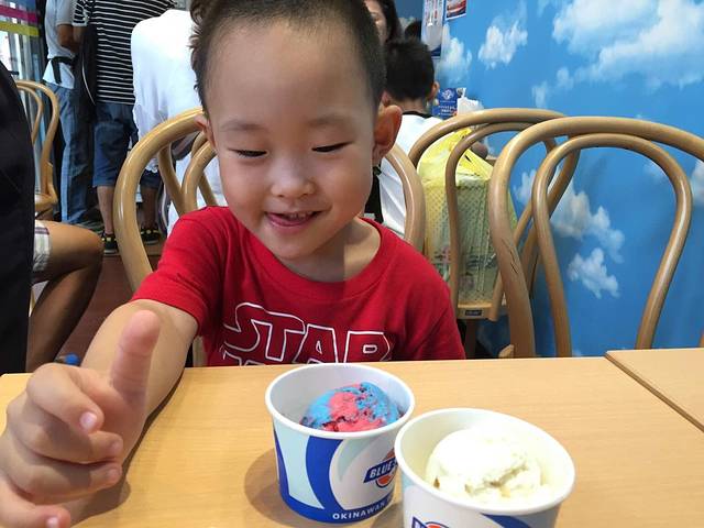 今天在美国村发生件趣事。我们到达美国村时,儿子还在睡觉。司机岛袋先生跟我说:你们去玩吧,我来看孩子就行了。我们犹豫了一下,担心孩子在我们不在时醒了看不到我们会闹,那时候怕岛袋先生搞不定。但又一想应该不会那么容易醒,就同意了。结果等我们回来时发现孩子已经醒了,正在后座自娱自乐呢。