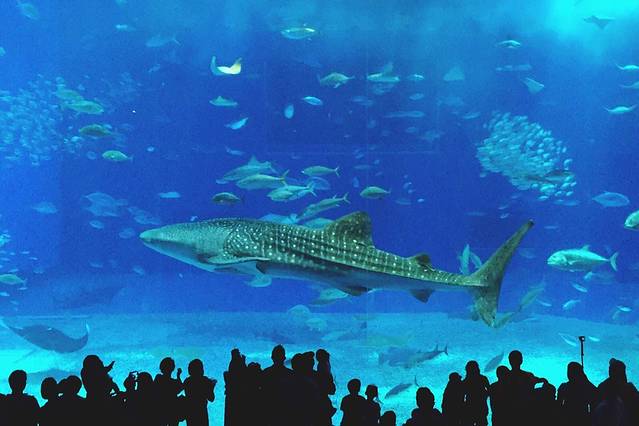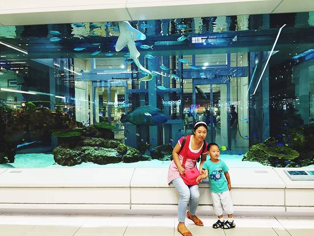 最大的水槽,很震撼。水槽旁是个餐厅,可以边就餐边看身边水槽里游来游去的鲸鲨和蝠鲼,很是浪漫。(不过饭食很是一般)