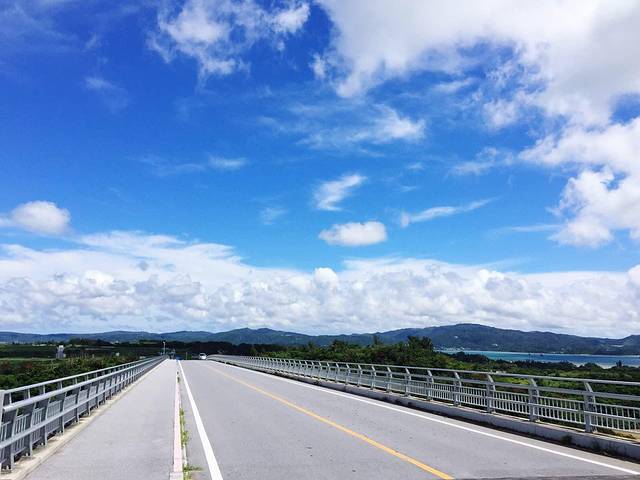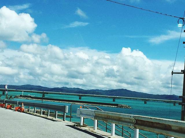 这座才是古宇利岛大桥。桥很长。蓝蓝的天、绿绿的海水,非常的漂亮、震撼。