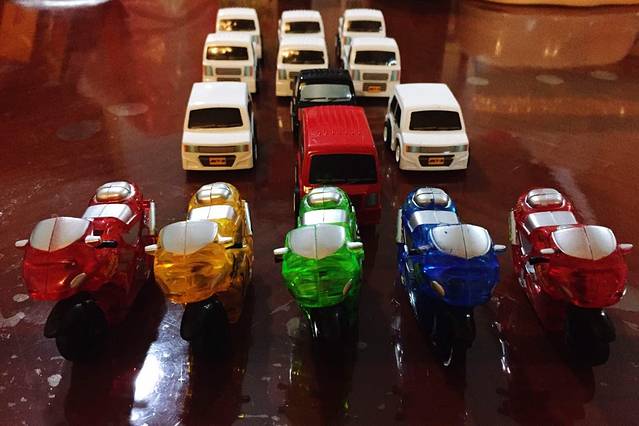 这堆就是花了2千多日元换来的小汽车和摩托车,孩子要的就是前排的各色摩托车。这就是满满的母爱啊❤️!