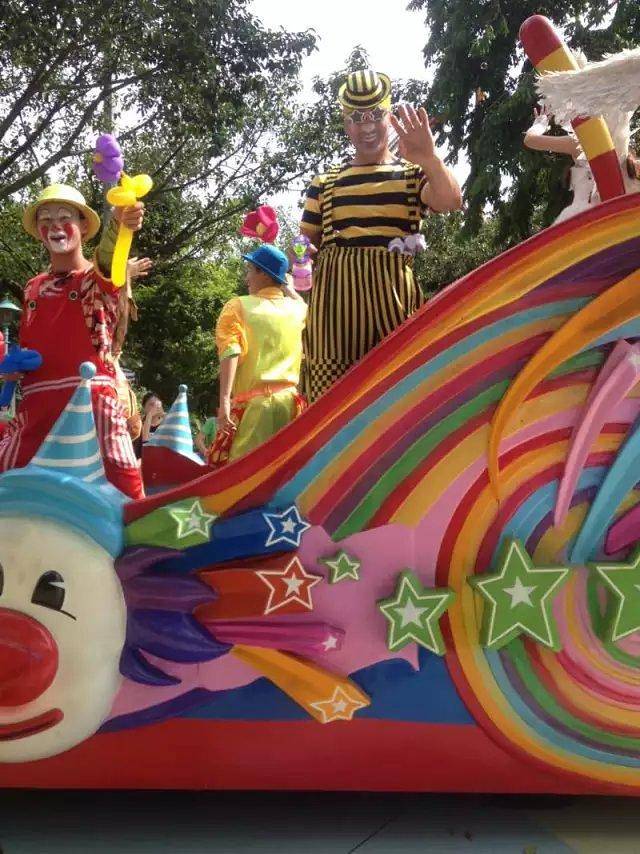 会有花车巡展。好多的外国人在表演~长隆的3D的效果非常好,上午玩累了可以下午就去影厅坐坐,会播放几十分钟的3D动画,我看的是小门神。还有星际穿越~都不是很长的
