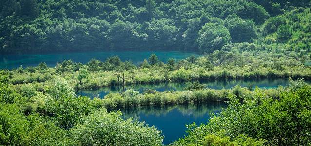 最后还是和大家走散了,我和托斯大哥,乘车来到卧龙海,人实在太多,想好好拍一张图片都是很难的,大家都在拍照,必须要等别人拍完才能拍到,我排队半分钟,刚好天气不错,拍到了这张还算让自己满意的照片!绿色的树 ,蓝色的水, 甚为奇观。这张图片用的手动挡,点测光,小光圈拍摄,这样可以保留景区本身的色彩!