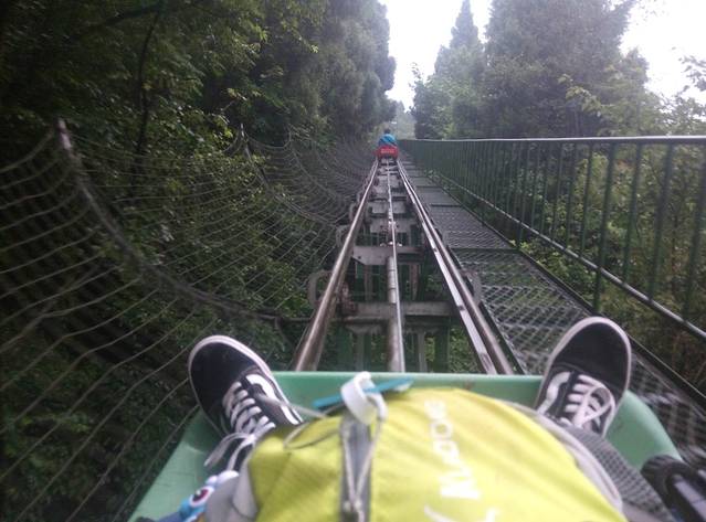 我们还是这样坐着小索道,超级有爱,惊险刺激的往上爬行!