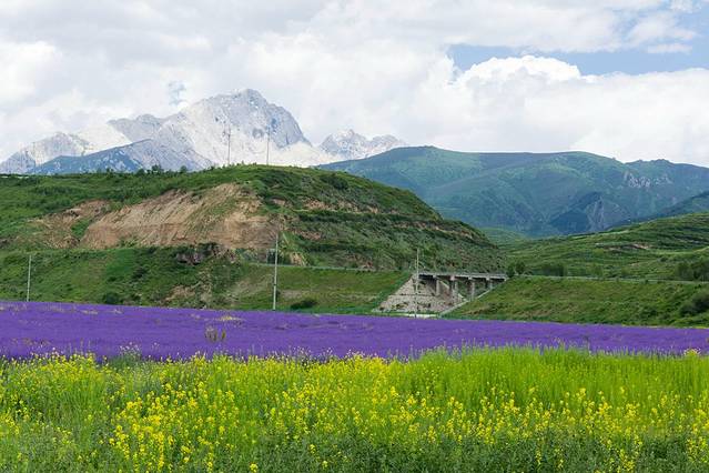 一路走走停停拍拍,也是看到了很多的美景,在高原上现在也正是薰衣草盛开的季节,很大的薰衣草基地,几乎望不到尽头的紫色,远处高山的雪,忽然让我想起来两年前去新疆也曾是坐在草坪上看雪山!