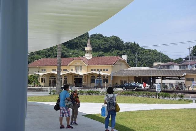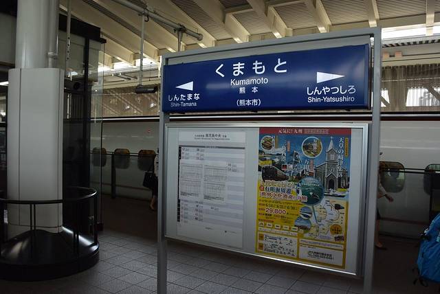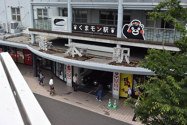 很快,列车停靠在熊本站的站台,不知道是不是因为车站改名的原因,站内到处都能看到部长胖嘟嘟的可爱身影。