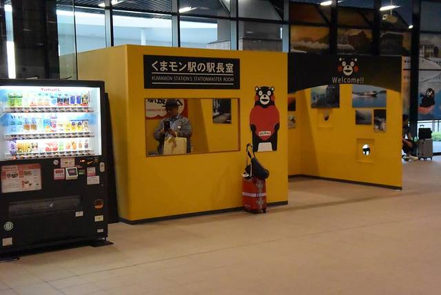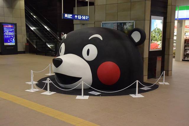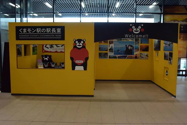 刚出站台,就看到熊本部长坐在站长室里迎接每一位路人!实在是太萌啦!今年正好还是JR九州新干线开通5周年,熊本站的站名都改成了“酷MA萌站”。