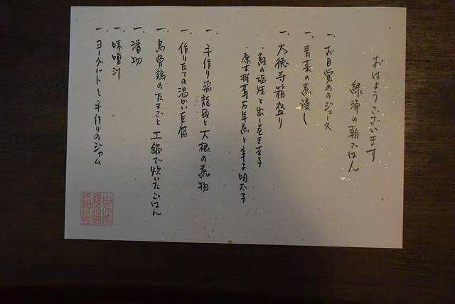 绿涌的早餐是标准的日式早餐,虽不是多选的自助餐风格,但是内容并不单一,高汤烹调出的美味料理配上釜锅蒸出的米饭,还有手工豆腐等美味,美好的一天从早餐开始。