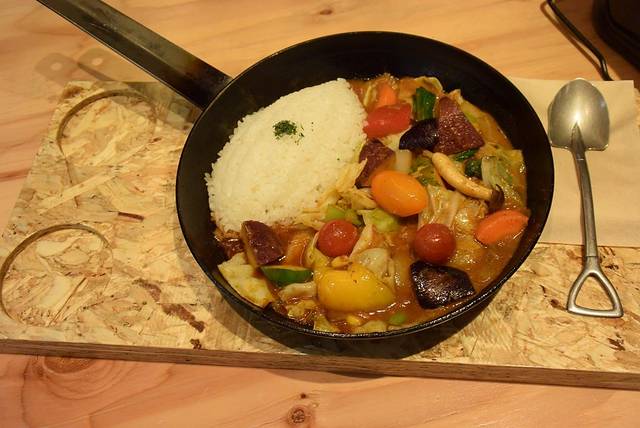 和以往的咖喱不同,这家的咖喱并没有使用过多的肉类,而是用丰富的蔬菜替代,对于热爱蔬菜的我来说确实是一个好选择。开放式的厨房可以从外面清楚的看到厨师制作的状态,很有趣。