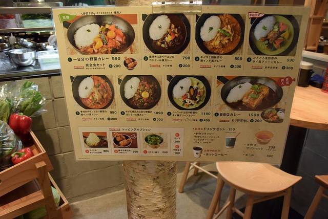 一份1日份蔬菜咖喱,只要990日元,各种新鲜蔬菜大量放入,果然是1天的分量。味道也十分独特,值得体验。