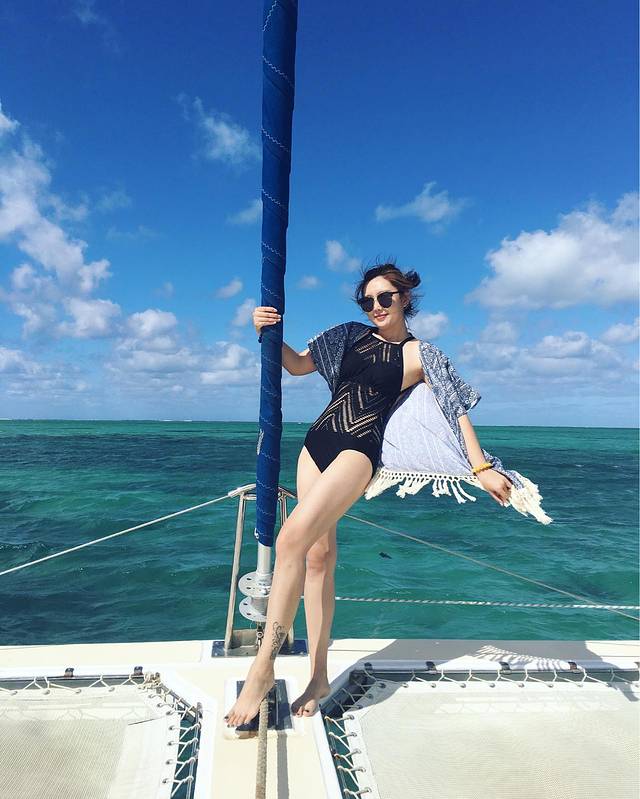 来毛里求斯怎么能不出海呢,我们一早从西岛穿越到东岛,开了一个小时,到达海滩被接上了大船。海上开派对,开始烧烤和海上游戏。