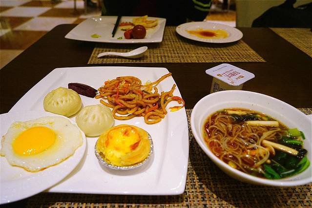 预订的酒店早餐是免费的,在一楼,餐厅不是很大,早餐品种也不是很多,但能吃饱,餐厅的厨师也会戴上口罩在敞开式厨房内操作,这个是值得表扬的。