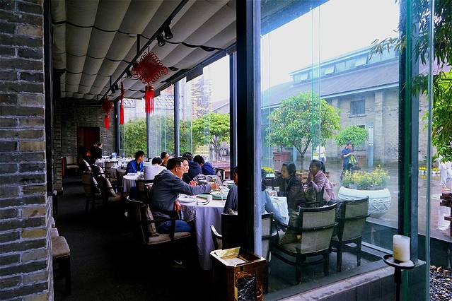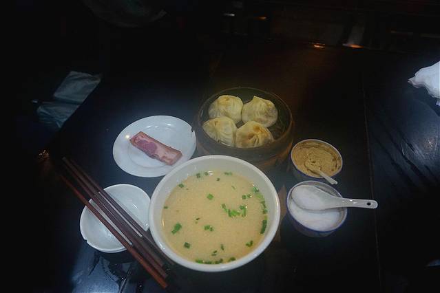 用筷子小心翼翼的夹起汤包,透过汤包皮,看到汤汁若隐若现的在内晃动,蟹粉量很足,以至于夹起的汤包差点破皮,用放镇江香醋的小碟子装上汤包,谨慎的端起来,吹吹几下,待稍凉,直接从薄皮之处吸掉汤汁,蟹肉带香甜,一口吃了2个,感觉不能再吃了,还得留着肚子持其他的。吃完看到其他桌上的当地人汤包是沾姜丝吃的,感觉很新奇,问了一下服务员说是姜丝要另外买的。