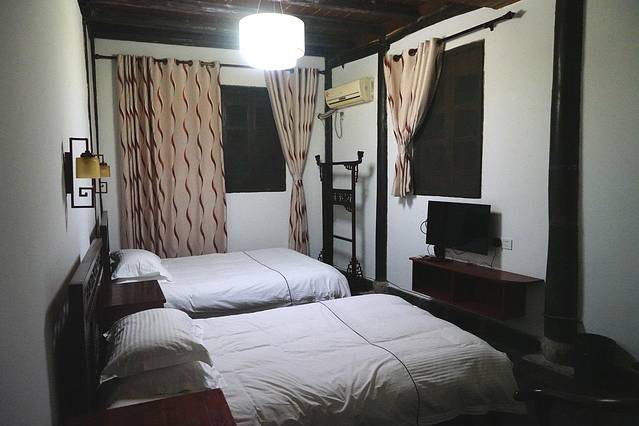 三人房在一楼内一双人床和一单人床。