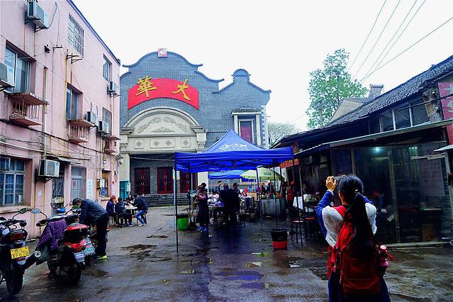 (A)从住宿地镇江小三楼国际青年旅社沿小码头街走230米,左转进入大西路 ,沿大西路走300米到老宴春→在老宴春用完早餐出来,看到得月楼面馆,继续坐下叫了一碗全家福吃,吃完往大西路走400米到大华面馆再品尝锅盖面,吃完后走回西津渡→逛镇江博物馆,逛完在西津渡内的《八分饱西津会》用午餐→用完走路去赛珍珠故居,顺着中山西路往东走,进入润州山路,没有想到围墙搞建筑,而且雨越来越大,只能走去火车站等候来接我们去扬州的车→扬州明发国际大酒店。