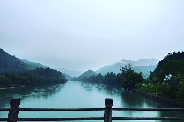 雨水淅淅沥沥下个不停,一行人撑伞走在这座横跨秋浦河面的悬索桥面上,临水望山,山水秀色给人一朦朦胧胧的感觉,如梦如画。