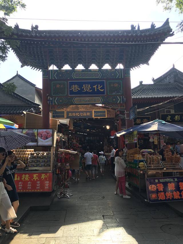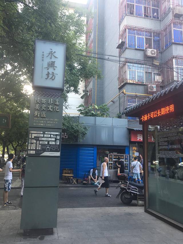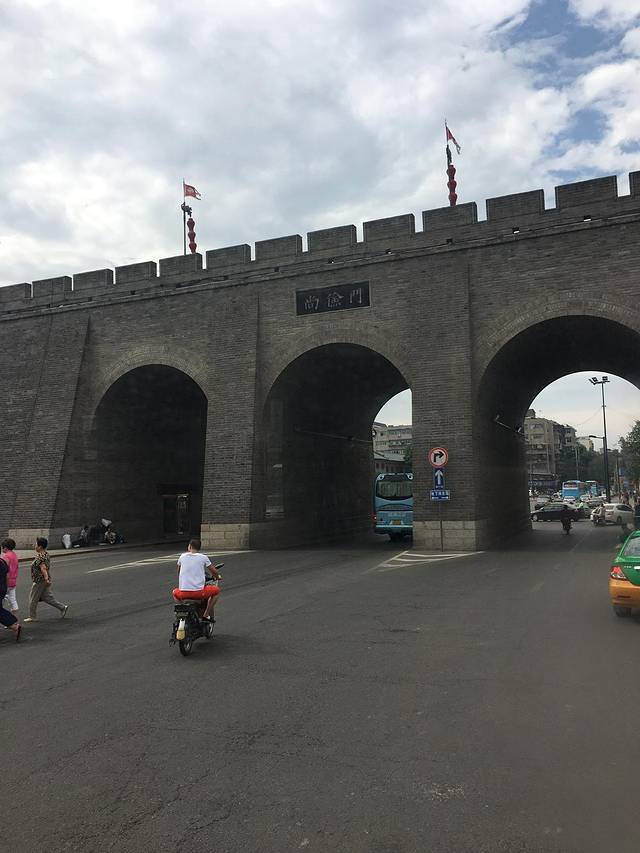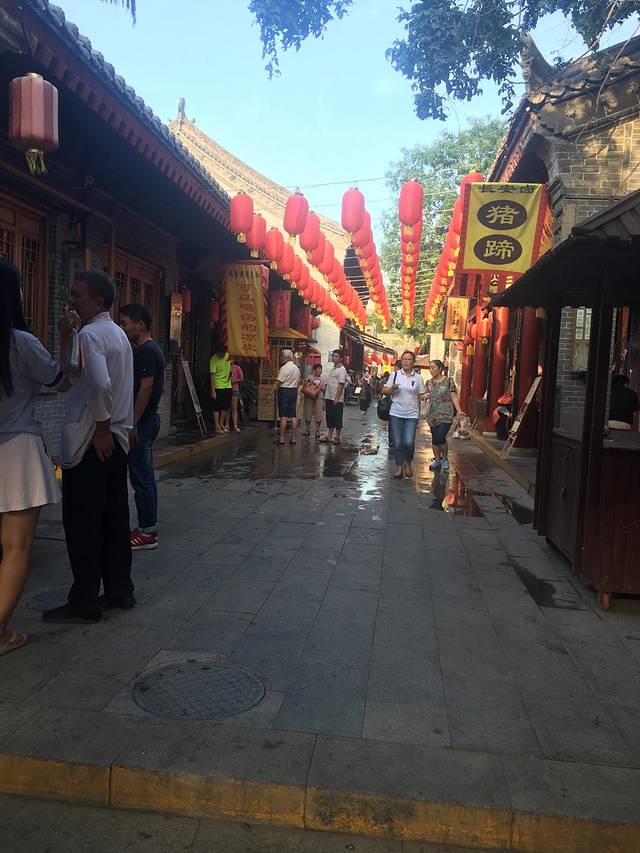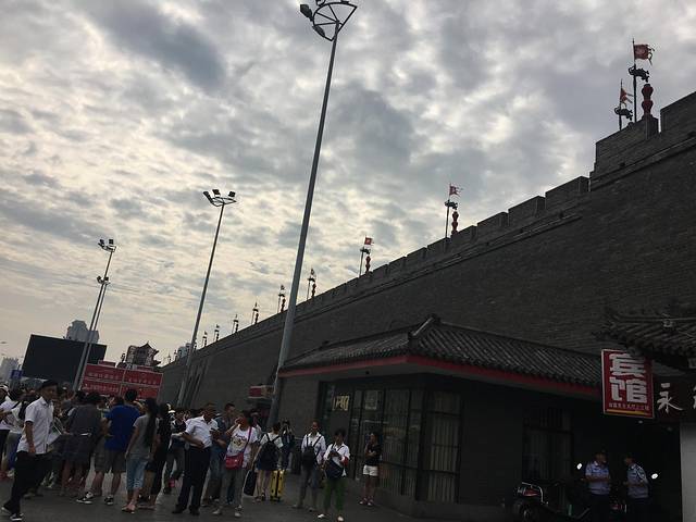 凌晨三点被孩子烫醒了,屈同学居然发烧了,吃了几天药没见效啊!只能拿毛巾物理降温了,人生地不熟的,在百度上找医院,药店,社区诊所,找了一大堆,折腾不知多久,我也睡着了,早上起床孩子的烧还没退,最坏的打算今天不去玩,韩同学一家去玩。找的有的药店没开门,又来到回民街那家红花药店买药,今天买了包扁咽颗粒,比武汉不只贵一倍,买好药在回民街过早,好多店10点以后开,找了一家牛丸糊辣汤,4个人点了两碗,不辣的,最后还加了个馍,那个馍太硬,加在糊辣汤里面吃,那酸爽简直吃不习惯,免强吃完了。屈同学只吃了几口馍,把药也冲给他喝了,真是不省心。下次出门一定备一些感冒药之类的。从回民街往北走到头就到了北院门。韩同学妈妈叫了滴滴快车,我们就在北院门这里等着,等了一会就来了,出发去城墙!