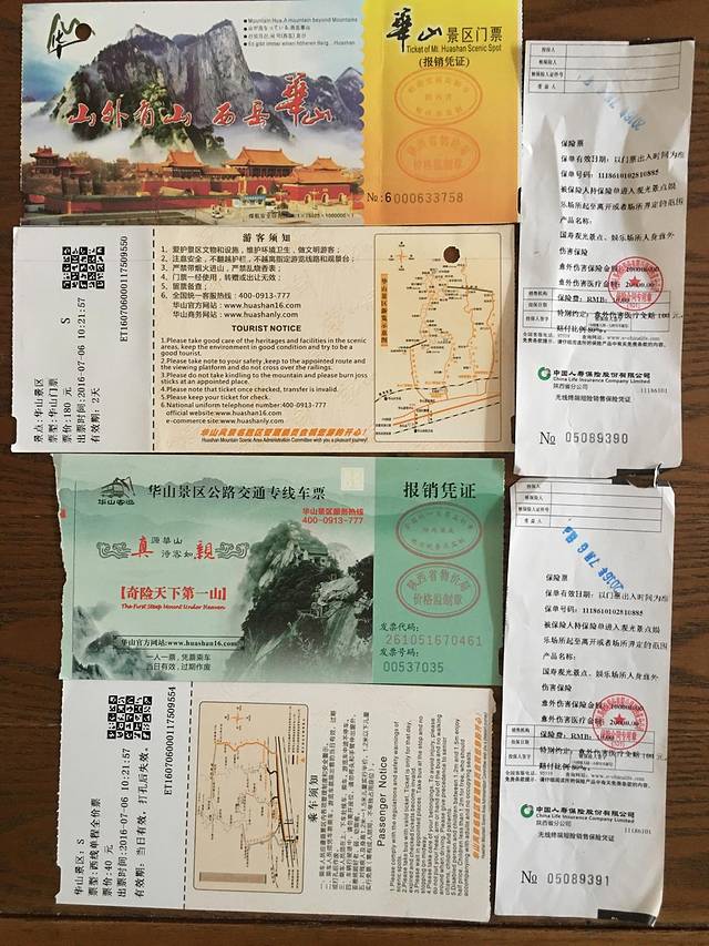 游客中心买的华山门票、大巴车票及保险,只要你自己不说不买保险,默认就买了,有点坑,问都不问?😱第一次买票,合计350