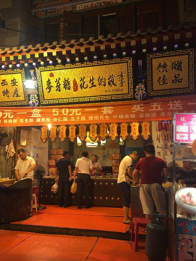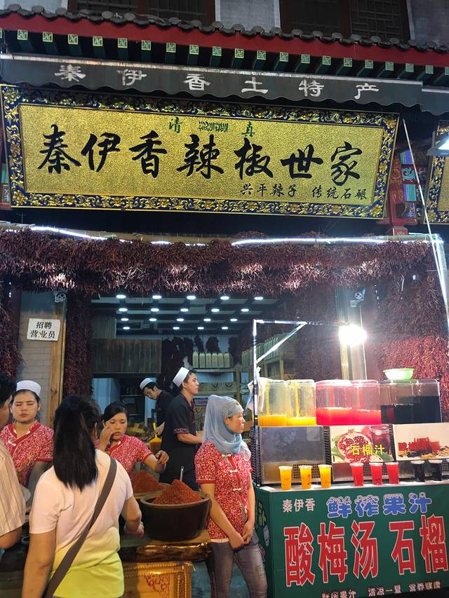 9:36,从华山回来,来到回民街吃点美食,犒劳一下自己。可谓是人山人海,烟雾缭绕,十里香飘,满大街都是烤羊肉串的味。