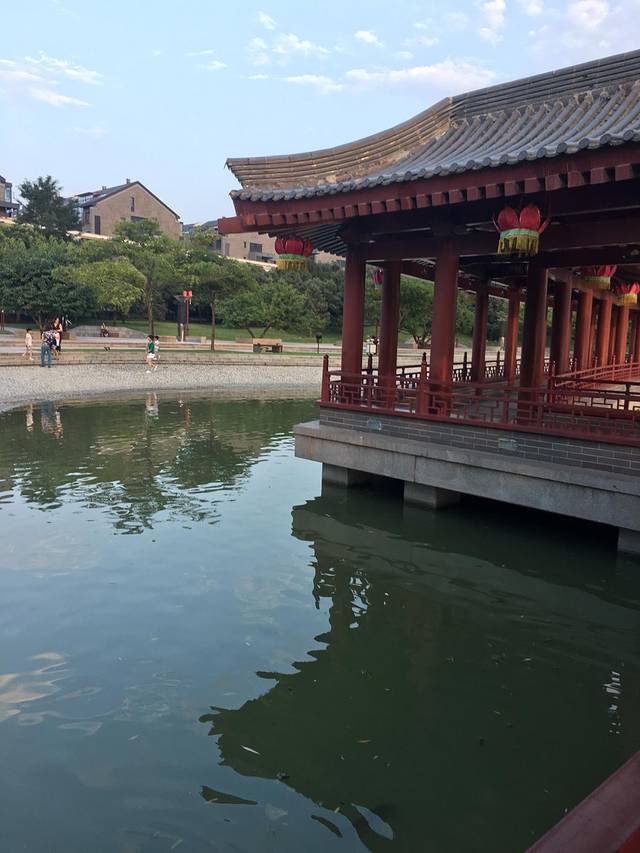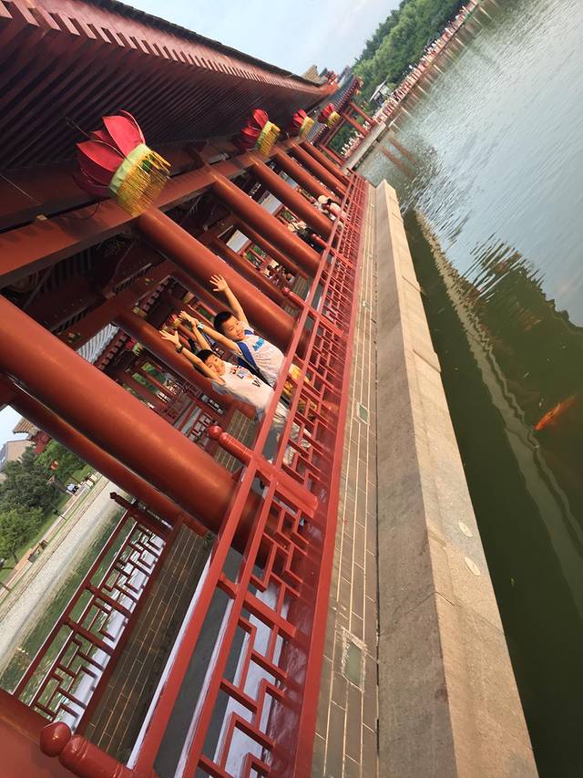 我们坐游8(610)从大唐芙蓉园下的,然后就没有看到西门,也没有走,韩同学妈妈说下早了,应该南门下的,直接拦了个的士说到南门,上了车一站路就到了北门,我说下去吧!一站路起步价9元有点贵。大概6点半就到了门口,可是夜场7点才能进去,等到7点,我们慢慢从北门逛到南门紫云楼。