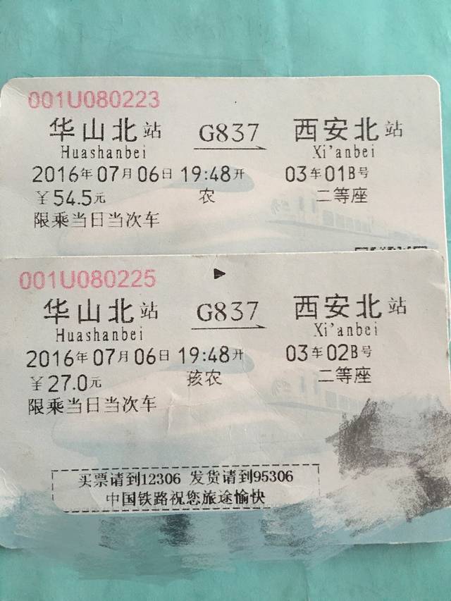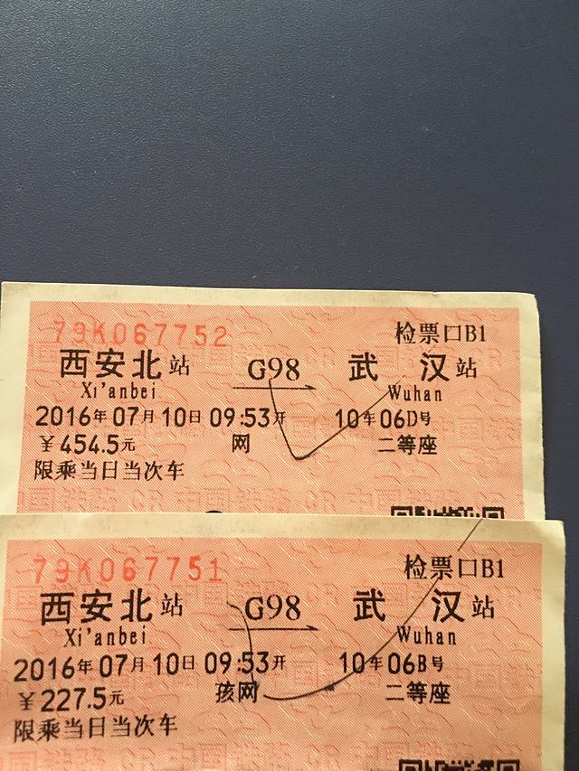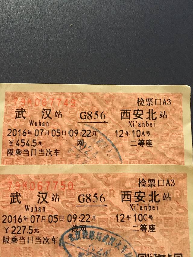 武汉去西安北的火车票,一大一小