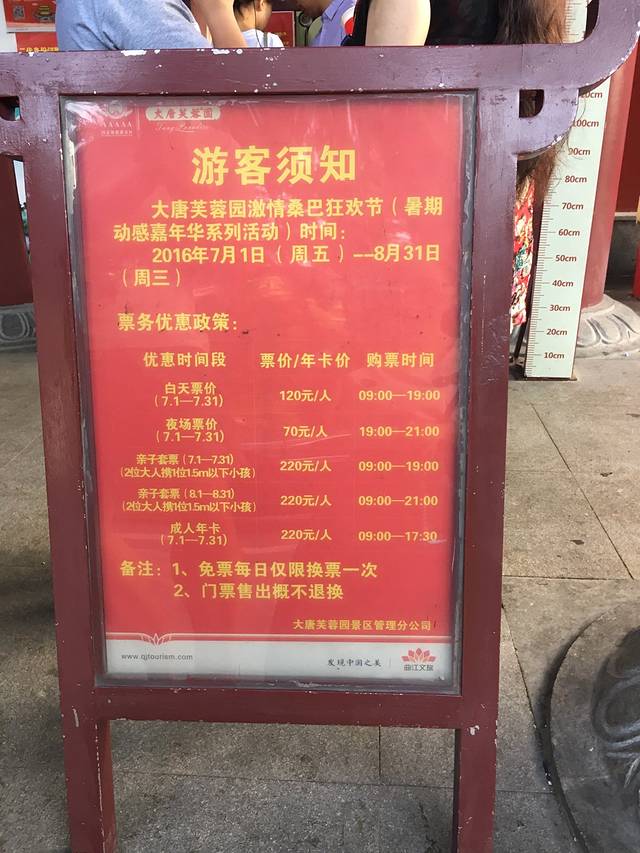 吐嘈一下又是5A级,票价自然就高了,成人白天场120,夜场7点进场要70,1.5米以下儿童,全天60。里面其实没有历史建筑,都是现代人文景观,可以当逛公园,不过有点对不起5A景区这个名称。建议逛一下夜场,看一下节目,看看夜景就差不多了。