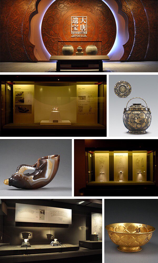 珍宝馆不能拍照,在度娘上找的。1970年10月,西安南郊的何家村、唐长安城兴化坊所在地,基建施工时窖藏出土了两个陶瓮和一个提梁罐,1000多件深埋地下上千年的金银器、玉器、贵重药物、中外钱币、铜器展露“真容”。唐代是中国古代最强盛的时代,而金银器、玉器又是唐代工艺美术的代表,盛唐时期的何家村窖藏可称得上“皇冠上的明珠”,也有专家称其为“何家村遗宝”、“大唐遗宝”,它与西方著名的考古发现“阿姆河遗宝”相对应,成为20世纪中国重大考古发现。