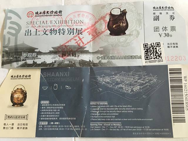 博物馆每天有4000张免费票派发,上午2500,下午1500,但主要一看排队的长龙(听说排队要2小时),你就会果断地走到右边购30元的门票了,还包括珍宝馆参观。如果有年票,可以免费换领含珍宝馆的门票。看文物都是三分看七分听,这里的导游解说音量都控制很低,蹭导游是办不到了,建议租一个讲解机,30元,100押金。在标注耳机的文物都有编号,可以输入编号听解说,也可以扫一扫玻璃上的二维码,但看字比较累。
