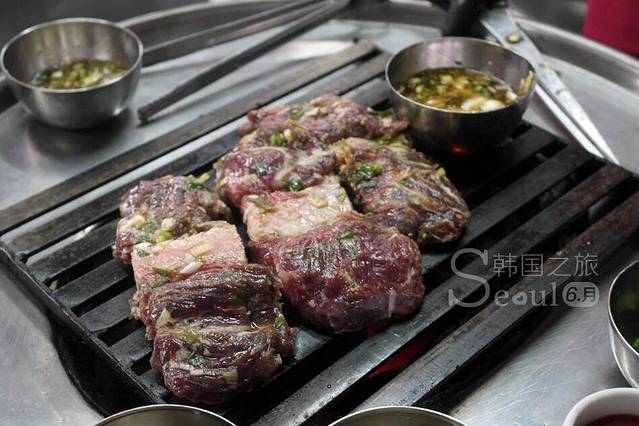 大块大块牛肉 3个人好像40000韩元左右吧!