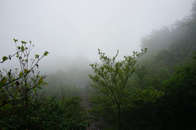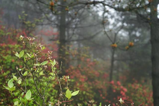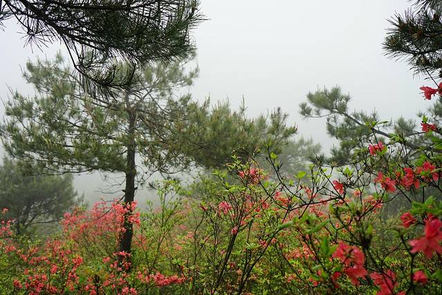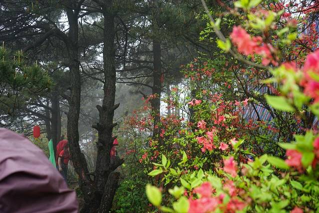 刚到可以看到杜鹃花的地方都是雾气