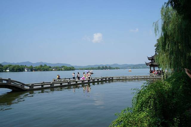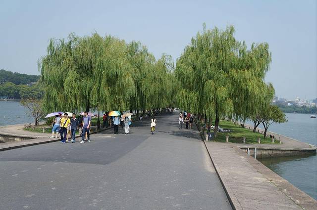 吃饱肚子再上路,就不走回头路,顺着白堤走下去啦。这时候已经1点了,那个热啊那个晒啊,妈妈我要变黑炭啦TT